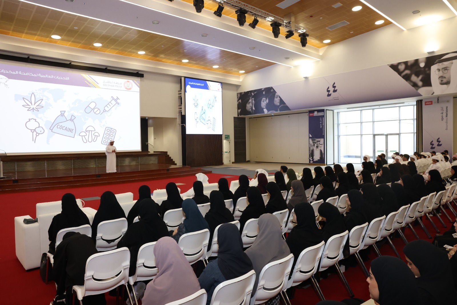 نظمت شرطة أبوظبي، ممثلة في إدارة مكافحة المخدرات بمديرية العين، محاضرة توعوية بعنوان "أسرة واعية.. مجتمع آمن" في القاعة الكبرى بالمبنى الهلالي في جامعة الإمارات العربية المتحدة، بحضور عدد من أعضاء الهيئة التدريسية والإدارية والطلبة.