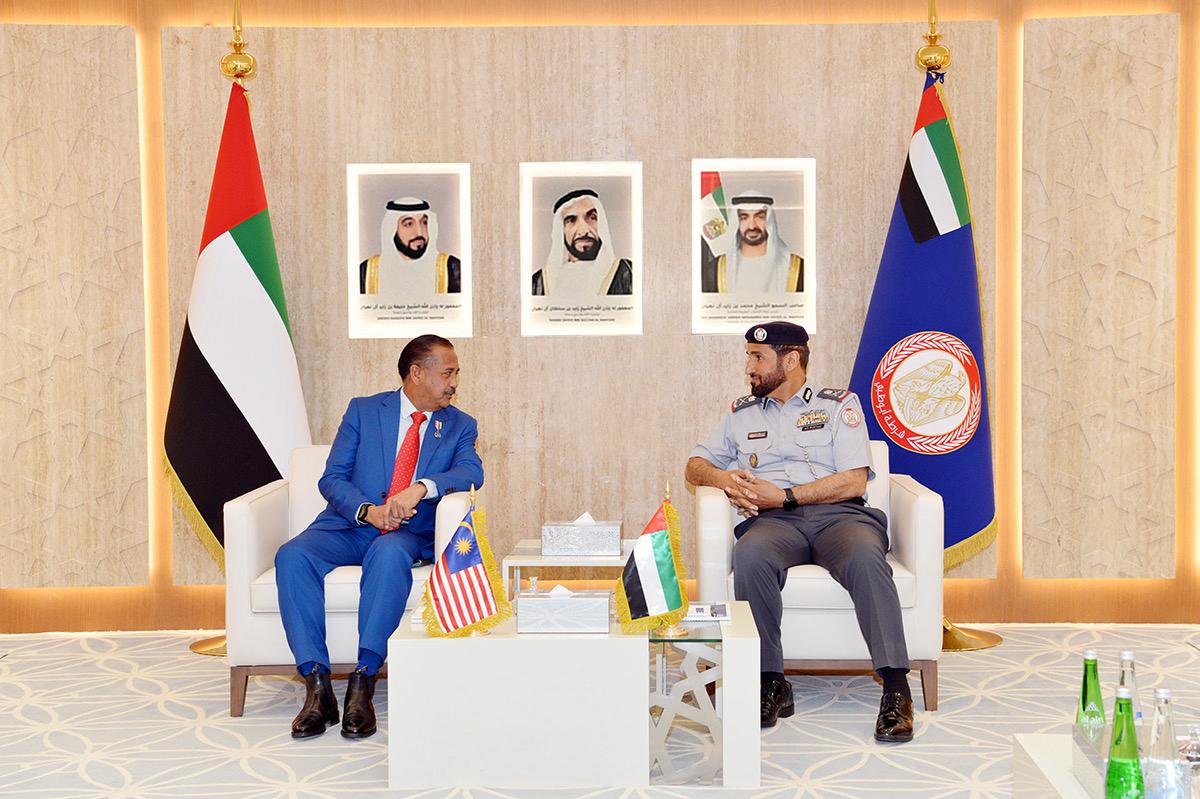 التقى معالي اللواء ركن طيار فارس خلف المزروعي قائد عام شرطة أبوظبي معالي تان سراي رزارودين بن حسين مفتش عام الشرطة الماليزية والوفد المرافق له بحضور سعادة اللواء مكتوم علي الشريفي مدير عام شرطة أبوظبي.