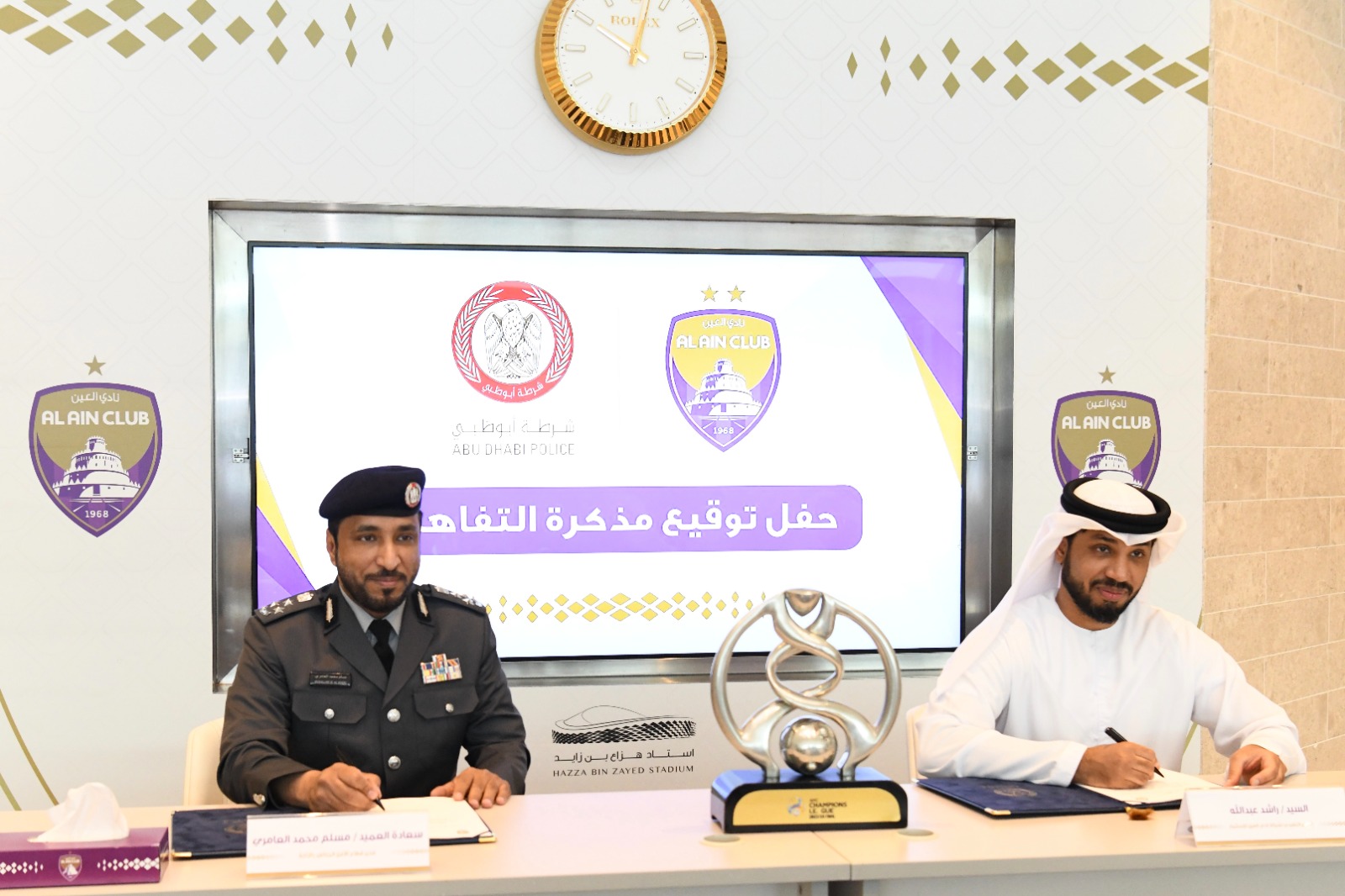 وقَّعت القيادة العامة لشرطة أبوظبي مذكرة تفاهم مع نادي العين الرياضي الثقافي، بهدف توطيد التعاون والشراكة بين الجهتين، وتعزيز الفعاليات المشتركة والمسؤولية المجتمعية.
