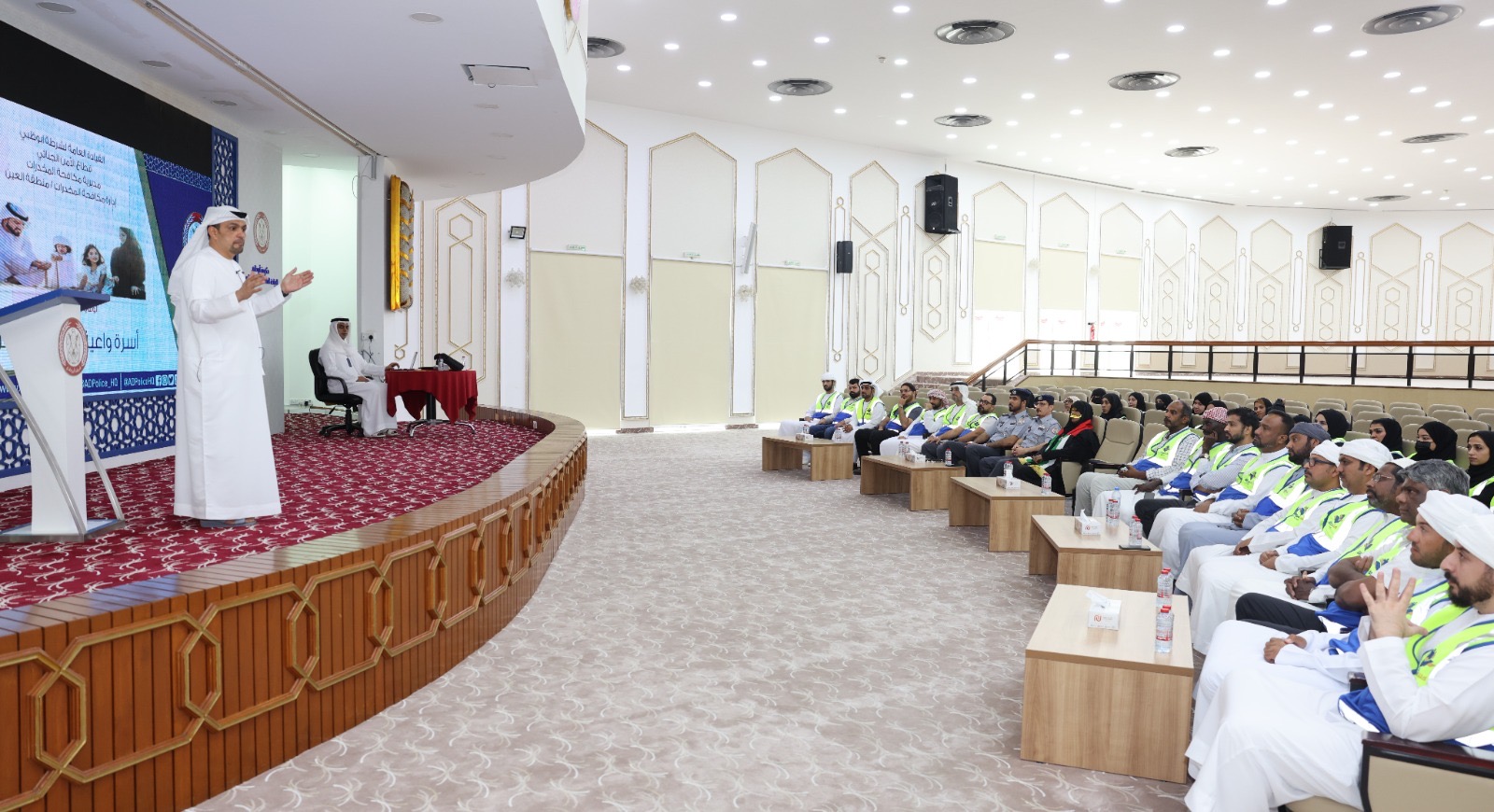 نظمت إدارة المراسم والعلاقات العامة بشرطة أبوظبي، بالتنسيق مع إدارة مكافحة المخدرات، محاضرة توعوية في مسرح نادي ضباط الشرطة بمدينة العين، بحضور أعضاء برنامج "كلنا شرطة"حول مخاطر المخدرات وسبل الوقاية منها.